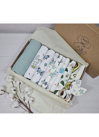 Муслінова плед-пелюшка: Легка та дихаюча пелюшка розміром 120х120 см, ідеальна для сповивання або використання як накидка під час годування.