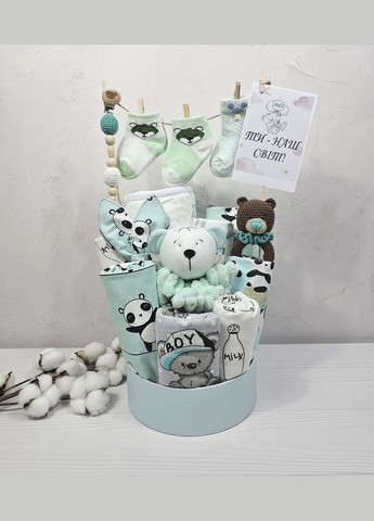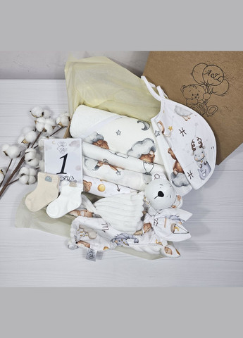 Подарунковий набір для новонародженого – турбота та ніжність у кожній деталі! Шукаєте ідеальний подарунок для новонародженого? Цей набір створений, щоб огорнути малюка комфортом і теплом з перших днів життя. У ньому зібрані найнеобхідніші речі, які стануть у пригоді молодим батькам та забезпечать затишок і догляд для крихітки. Що входить до набору? Рушник-куточок (80×80 см) – м'який, ніжний та ідеально підходить для делікатної шкіри малюка. Завдяки спеціальному капюшону на куточку допомагає зручно загорнути дитину після купання, зберігаючи тепло та комфорт. Муслінова плед-пелюшка (120×120 см) – виготовлена з натурального, дихаючого матеріалу, який чудово пропускає повітря. Її можна використовувати як легку ковдрочку, пелюшку для сповивання, накидку для годування або затишний пледик для коляски. Непромокаюча багаторазова пелюшка (50×80 см) – практичне рішення для будь-яких ситуацій. Захищає ліжечко, матрац або інші поверхні від вологи, забезпечуючи комфорт малюка під час сповивання чи сну. Легко переться та швидко висихає. Фланелева пелюшка (80×100 см) – ніжна та м’яка до дитячої шкіри, чудово зберігає тепло, ідеально підходить для сповивання або використання як легка ковдрочка. Дві пари шкарпеток – маленькі та зручні, вони ніжно огорнуть крихітні ніжки малюка, забезпечуючи тепло та комфорт. Комфортер "Ведмежа" – м’яка іграшка-пледик, що стане першою улюбленою іграшкою малюка. Вона допоможе створити відчуття безпеки та затишку, а також стане незамінним супутником для сну. Еко-гризунець "Шурухливі вушка" – безпечний і натуральний аксесуар для малюків, що полегшує процес прорізування зубчиків. Гризунець виготовлений з екологічних матеріалів, а шурхіт вушок привертає увагу малюка, розвиваючи сенсорні навички. Два багаторазові непромокаючі слинявчики – практичний аксесуар, який захистить одяг малюка під час годування чи прорізування зубчиків. Легко переться та швидко висихає. Картки для щомісячної фотосесії (12 шт.) – допоможуть зафіксувати кожен етап зростання малюка від 1 до 12 місяців. З ними фото будуть стильними, пам’ятними та особливими. Цей набір – чудовий вибір для новонародженого! Він стане прекрасним подарунком на виписку, хрестини, перший візит до малюка або baby shower. Все, що потрібно для догляду, зручності та перших ніжних моментів – у цьому комплекті!