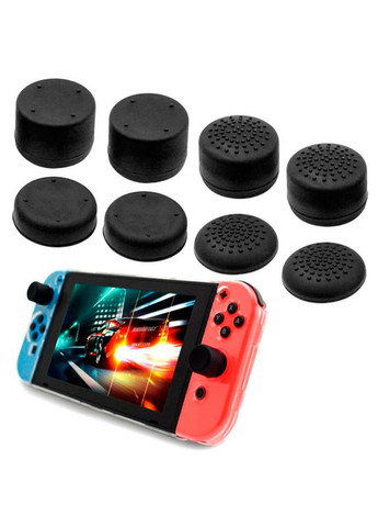 Користувачам портативної ігрової приставки Nintendo Switch, відомо, що прогумова поверхня аналогових стиків, досить швидко стирається, грати стає дуже незручно. Щоб уникнути таких проблем, виробляються ці силіконові накладки. Вони одягаються зверху на стики. Щоб накладки надійно трималися, розмішайте ці ковпачки на цілі, ще не ""стерті"" капелюшки стіків. гру ще більш яскравою та приємною. Завдяки різній висоті, можна використовувати різні комбінації накладок, під будь-який жанр ігор: стрілялки, гонки. екшени, спортивні та інші. Комплект – 8 шт. Купити Силіконові накладки на стики Nintendo Switch 8 шт. чорні ви можете, оформивши замовлення у нас на сайті, а також за телефоном гарячої лінії.