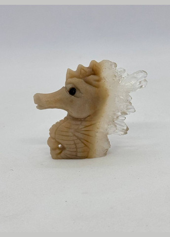 Відкрийте для себе дивовижний світ морських глибин із цією чарівною фігуркою морського коника, майстерно вирізаною з натурального кварцу. Ця унікальна скульптура поєднує в собі гладке, поліроване тіло коника теплих, світлих відтінків — від кремового до бежевого чи світло-коричневого, та виразну "гриву" з природних, прозорих кристалів кварцу. Ці кристали надають фігурці неповторної текстури та блиску, створюючи ілюзію водних струменів або екзотичних водоростей. Деталізоване різьблення передає витонченість форм морського коника, а маленькі темні очі додають йому живої виразності.