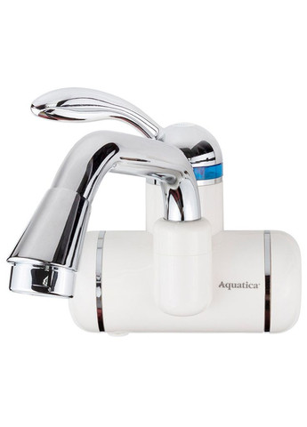 Кран-водонагрівач проточний електричний AQUATICA LZ-6A211W — це сучасний пристрій із персональним нагріванням води для встановлення у квартирі, на дачі або в закладах громадського користування. Встановлення — настінне, з під'єднанням до електромережі 220 В. Цей проточний водонагрівач AQUATICA складається з термостійкого білого корпусу з нагрівальними елементами всередині, довгого вигнутого виливу з вбудованим аератором, важеля для регулювання натиску та температури струменя. Переваги: привабливий зовнішній вигляд; компактність; постійний доступ до гарячої води; просте керування однією рукою; запобігання потраплянню вологи в зону нагрівальних елементів.