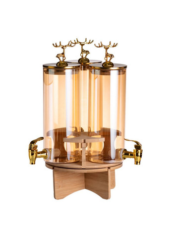 Вишукана скляна лимонадниця 3в1 об'ємом 5.5 літра — ідеальний вибір для стильної подачі напоїв на фуршетах, банкетах, вечірках та домашніх зустрічах. Три окремі ємності дозволяють подавати відразу кілька видів напоїв, фруктової води чи домашнього лимонаду. Декоративні кришки із золотими оленями та краники під золото надають сервіруванню преміального та святкового вигляду. Міцна дерев'яна підставка робить конструкцію стійкою та естетичною. Характеристики лимонадниці 3в1 загальний об'єм: 5.5 літра; кількість ємностей: 3 шт.; об'єм однієї колби: ~1.83 л; діаметр кожної ємності: 9.5 см; загальний діаметр лимонадниці: 21 см; висота кришками: 40 см; матеріал колб: термостійке скло; матеріал кришок та кранів: метал із золотистим покриттям; підставка: натуральне дерево, поворотна конструкція. Лимонадниця відмінно підійде для соків, компотів, води з цитрусами, ягідних напоїв та авторських настоянок. Кожна ємність має власний кран, що забезпечує зручність використання. Поворотна дерев'яна основа полегшує доступ до будь-якої з ємностей та робить подачу максимально комфортною. Переваги лимонадниці на 3 секції 3 окремі колби — подання різних напоїв в одному оформленні. Преміальний зовнішній вигляд — ефектні золоті кришки з оленями та фурнітура. Термостійке скло — зберігає смак напоїв, легко миється. Компактна кругла форма — займає мінімум місця на столі. Ідеальна для заходів, кейтерингу, кафе та подарунків. Купити скляну лимонадницю 3в1 із золотими деталями та дерев'яною підставкою можна з доставкою по всій Україні. Безпечна упаковка гарантує безпеку під час транспортування. Перетворіть кожну подачу напоїв на подію. Особливості та переваги: Якість: Товар виготовлений з матеріалів, що відповідають сучасним стандартам якості, що гарантує його високу міцність і довговічність у використанні. Зручність: Легкий у використанні та догляді, ідеальний для щоденного використання, забезпечуючи комфорт у будь-якій ситуації. Стиль: Сучасний дизайн і елегантний вигляд, що підходить до будь-якого інтер'єру або