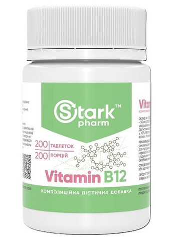 Vitamin B12 50мкг Stark Pharm - добавка вітаміну B12 у вигляді таблеток по 50 мкг (2000% денної норми). Вітаміном B12 називають цианокобаламин, так як саме в цій формі в організм людини надходить основна кількість вітаміну B12. Основні функції Vitamin B12 50 мкг Stark Pharm: Бере участь у білковому обміні Бере участь в утворенні еритроцитів (при нестачі виникає анемія) Необхідний для синтезу нервового волокна - мієліну Входить до складу багатьох ферментів Бере участь в синтезі креатину Основні показники застосування в спорті Vitamin B12 50 мкг Stark Pharm: Забезпечення нормальної роботи центральної нервової системи Метаболізм вуглеводів Стимуляція м'язів, за рахунок нервової активації трофічних процесів, а також високою сили скорочення і координації Додатковий прийом вітаміну B12 обов'язковий для спортсменів - вегетаріанців. Склад однієї порції Vitamin B12 50 мкг Stark Pharm (1 таблетка): Вітамін В12 (ціанокобаламін) - 50 мкг (2000% денної норми) Рекомендації щодо застосування Vitamin B12 50 мкг Stark Pharm і дозування: приймайте 1-5 таблеток 1-3 рази на день, залежно від необхідного результату.
