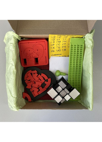 Бокс для інтелектуальної дівчини — це подарунок, який поєднує головоломки, інтелектуальні виклики та нові знання. Він створений спеціально для тих, хто любить логічні завдання, незвичайні хобі та хоче розвивати себе у різних напрямках. У наборі: Головоломка «Серце» — символічна гра-головоломка, що тренує просторове мислення та водночас дарує романтичний підтекст. Головоломка «П'ятнашки I love you» — класична механічна головоломка з оригінальним дизайном, яка вчить терпінню, уважності та наполегливості. Кубик без кольорів (дзеркальний куб) — логічна головоломка нового рівня, де складність полягає не у кольорах, а у формах. Ідеальна для тих, хто шукає інтелектуальні виклики. Набір для шрифту Брайля — можливість познайомитися з системою тактильного письма, навчитися писати й читати шрифтом, який відкриває новий погляд на комунікацію. Чому цей бокс підходить для інтелектуальної дівчини: він дарує поєднання емоцій та розвитку — від романтичних головоломок до справжніх інтелектуальних тренажерів; допомагає тренувати пам’ять, логіку, просторове мислення та увагу; дозволяє знайти нові хобі та спробувати себе у зовсім іншому світі — від головоломок до письма шрифтом Брайля; стильне пакування та відеоуроки роблять процес легким і приємним. Підійде як: подарунок дівчині чи подрузі, яка любить розумні ігри; спосіб цікаво провести час удвох або наодинці; оригінальний подарунок на день народження, свято або як знак уваги. Цей набір поєднує символіку, логіку та креативність, тому стане справжнім відкриттям для будь-якої дівчини, яка цінує інтелектуальні виклики.