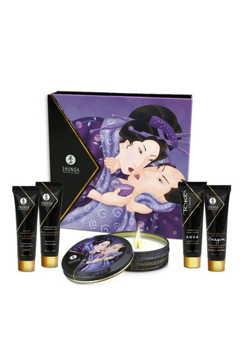 Рекомендуємо придбати подарунковий набір Shunga Geishas Secrets — Exotic Fruits, щоб випробувати на собі таємничий японський ритуал кохання. Із цим розкішним набором для чуттєвого масажу й пристрасних занять коханням ви легко перевтілитеся в загадкову гейшу, яка знає найприхованіші таємниці незабутнього солодкого злягання. Подарунковий набір Shunga Geishas Secrets – Exotic Fruits — це високоякісна продукція Shunga в мініформаті, що ідеально підходить для першого знайомства із цими неймовірними косметичними засобами. Склад набору Shunga Geishas Secrets – Exotic Fruits: - 1 олія для еротичного масажу (10 мл); - 1 зігрівальна олія-афродизіак (10 мл); - 1 масажна мінісвічка (30 мл); - 1 гель-лубрикант Toko Aqua Personal Lubricant (10 мл); - 1 стимулювальний крем Dragon Intensifying Cream for Lovers (7 мл). Масажні продукти зі смаком екзотичних фруктів пробуджують бажання торкатися, цілувати, злизувати з тіла інтенсивний смак кохання, ковзати й рухатися в такт. Для еротичного масажу вдвох у наборі ви знайдете дві масажні олії. Одна з них — із зігрівальним поколювальним ефектом і п'янким ароматом і смаком. Масажна свічка, що тане за низької температури, забезпечить незвичайні відчуття. У наборі також є гель-лубрикант на водній основі для пристрасних занять коханням, а також вишуканий стимулювальний крем Dragon. Shunga — це канадський виробник сертифікованої еротичної арткосметики, орієнтованої на найдавнішу японську культуру Shunga. Компанія — світовий лідер у сфері косметики Erotica. Її натуральні компоненти в поєднанні з активними інгредієнтами забезпечують шикарний результат і знаходять свого споживача в усіх куточках світу. Склад: Еротична масажна олія: Prunus Amygdalus Dulcis Oil, Vitis Vinifera Seed Oil, Sesamum Indicum Seed Oil, Persea Gratissima Oil, Carya Illinoensis Seed Oil, Carthamus Tinctorius Seed Oil, Parfum, BHT, Tocopherol, Benzyl Benzoate, Benzyl Salicylate, Benzyl Alcohol, Limonene, Linalool, Amyl Cinnamal, Hexyl Cinnamal, Alpha-Isomethyl Ionone, Hydroxycitronellal, Geraniol. Зігрівальна олія: Glycerin, Propylene glycol, Aroma, Sodium Saccharin, Limonene, CI 42090, CI 17200. Масажна свічка: Hydrogenated Soybean Oil, Cocos nucifera oil, Parfum, Prunus amygdalus dulcis oil, Carthamus tinctorius seed oil, Persea gratissima oil, Sesamum indicum seed oil, Vitis vinifera seed oil, Tocopherol, Amyl Cinnamal, Citral, Limonene, Linalool. Гель-лубрикант Токо: Glycerin, Aqua, Propylene Glycol, Polyquaternium-7. Крем Dragon: Aqua, Glycerin, Propylene Glycol, Carthamus Tinctorius Seed Oil, Caprylic/Capric Triglyceride, Hydrogenated Polyisobutene, Mentyl lactate, Aroma, Arginine, Prunus Amygdalus Dulcis Oil, Vitis Vinifera Seed Oil, Sesamum Indicum Seed Oil, Persea Gratissima Oil, Citric Acid, Ethylene/Propylene/Styrene Copolymer, Butylene/Ethylene/Styrene Copolymer, Polyquaternium-7, Polyglyceryl-6 Octastearate, Hydroxytethylcellulose, Polyglyceryl-10 Mono/Dioleate, Acrylates/C10-30 Alkyl Acrylate Crosspolymer, Sucralose, Carbomer, Vanillyl Butyl Ether, Lepidium meyenii root extract, Epimedium Grandiflorum extract, Tribulus Terrestris extract, Paullinia Cupana Seed Extract, Ptychopetalum olacoides extract,Tocopherol, Capsicum Frutescens Resin, Benzyl Alcohol, BHT.