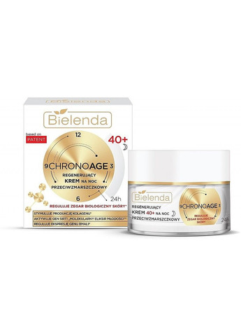 Bielenda Chrono Age 24H Regenerating Anti-Wrinkle Night Cream — це продукт, який пропонує сучасні та інноваційні рішення для догляду за шкірою обличчя після 40 років. Цей нічний крем призначений для активного відновлення та антивікового догляду. Він втілює індивідуальний підхід до кожної жінки, яка цінує свою красу та здоров'я шкіри обличчя. Особливості Bielenda Chrono Age 24H Regenerating Anti-Wrinkle Night Cream: - забезпечує антивіковий догляд протягом ночі, коли епідерміс потребує інтенсивного відновлення;- містить активні інгредієнти, які сприяють відновленню шкіри, роблячи її більш здоровою та еластичною;- має властивості розгладження і допомагає покращити текстуру шкірного покриву, роблячи його більш гладеньким;- багатий склад крему забезпечує інтенсивне живлення шкіри, зберігаючи її здоровою та сяйною;- забезпечує індивідуальний підхід до догляду, допомагаючи кожній жінці зберігати свою красу та здоров'я;- підходить для всіх типів шкіри, зокрема чутливої, що робить його універсальним.
