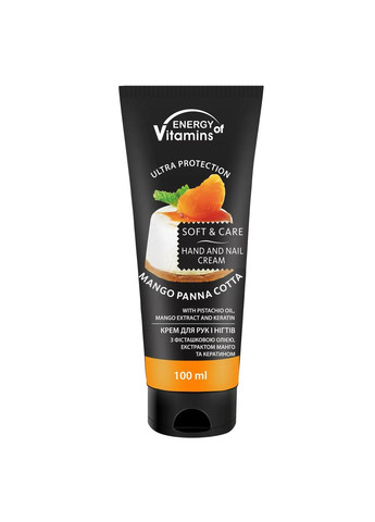 Крем для рук та нігтів Energy of Vitamins (Енерджі оф Вітамінс) Mango Panna Cotta - забезпечує м'яке очищення та делікатне зволоження. Energy of Vitamins: унікальна серія косметики на основі натуральних фруктових екстрактів та олій. Основні переваги: олії та екстракти цілющих фруктів і квітів живлять і захищають шкіру, піклуючись про її здоров'я свіжі та приємні аромати ягід та фруктів заряджають бадьорістю та радістю на весь день інтенсивне зволоження, захист шкіри, надання їй гладкості та ніжності без відчуття жирності Застосування: Рівномірно нанесіть крем на шкіру рук, приділяючи увагу області нігтьових пластин. Запобіжні заходи: Використовуйте лише зовнішньо. Уникайте попадання в очі. Перевіряйте чутливість до компонентів. Характеристики Об'єм: 100 мл Виробник: Energy of Vitamins, Україна.
