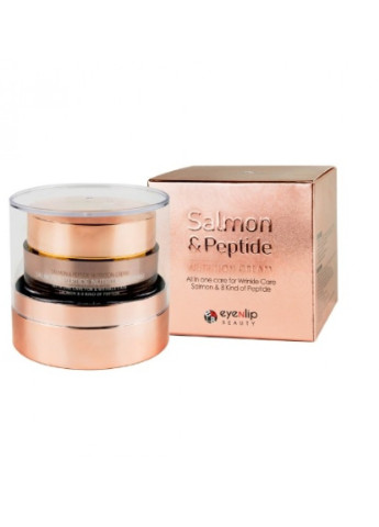Крем Eyenlip Salmon & Peptide Nutrition Eye Cream призначений для догляду за ніжною та чутливою шкірою навколо очей. Завдяки вмісту корисних інгредієнтів продукт чудово живить, зволожує дерму, розгладжує «гусячі лапки», видаляє набряклість і темні кола під очима. Ніацинамід рятує клітини від руйнування, захищає від негативного впливу ультрафіолетового випромінювання, позбавляє сухості. Пептиди регулюють обмінні процеси, зміцнюють ліпідний шар, підвищують тонус, нейтралізують активність вільних радикалів, зміцнюють стінки капілярів. Олія лосося має яскраво виражену омолоджуючу дію, підтримує здоров'я шкірного покриву, насичує його вітамінами та амінокислотами, надає доглянутого вигляду. Засіб підходить для зрілої шкіри, що в'яне, втратила життєву силу з явними ознаками старіння.