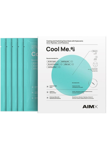 Охолоджуюча та зволожуюча маска для обличчя з гіалуроновою кислотою, пептидами та пробіотиками.Ця тканинна маска, багата активними інгредієнтами, вироблена з рослинної целюлози, яка може адаптуватися до форми будь-якого обличчя, покриваючи його наче друга шкіра. Така маска передає шкірі надзвичайно велику кількість необхідних відновлюючих речовин.Наносьте маску навіть коли ви щось робите! Вона зручна у використанні та лягає на обличчя, як друга шкіра! • 42 активних інгредієнта• Зменшує дратівливість шкіри та набряки, охолоджує шкіру• Заспокоює шкіру після засмаги• Інтенсивно відновлює та зволожує• Формула збагачена 6 видами гіалуронової кислоти та 5 пептидами• Надає шкірі природне сяйво та життєву силу• Пробіотик Lactobacillus Ferment відновлює баланс мікрофлори шкіри AIMX – це тканинні маски для обличчя, ефективність яких підтверджена наукою. Формули наших тканинних масок були розроблені та створені в тісній співпраці з провідним південнокорейським виробником косметики та відомими європейськими фахівцями з догляду за шкірою.