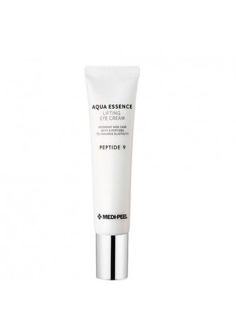 Підтягувальний крем Peptide 9 Aqua Essence бренду Medi-Peel має формулу на основі потужног комплексу пептидів, що допомагає зменшити видимість ліній і зморщок, попереджаючи їхню повторну появу. Продукт включає цілий ряд зволожувальних та живильних інгредієнтів, які підтримують оптимальний баланс епідермісу, підвищуючи його пружність та еластичність. Особливості Medi-Peel Peptide 9 Aqua Essence Lifting Eye Cream: пептиди у поєднанні аденозином стимулюють вироблення колагену та еластину, підвищують тонус, укріплюють тургор шкіри; пантенол пом’якшує, сприяє загоєнню дрібних пошкоджень епідермісу; ніацинамід освітлює темні кола під очима, покращує тон шкіри; гіалуронова кислота забезпечує пролонговане зволоження; коензим Q10 бореться із передчасним старінням шкірного покриву, активізує регенерацію клітин.