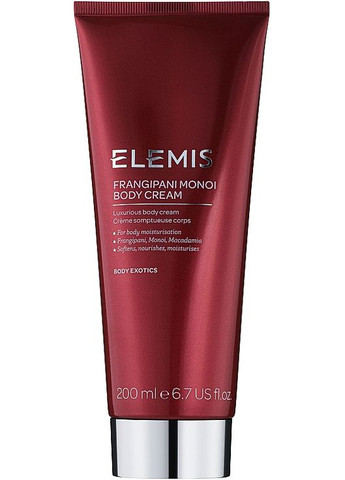 Крем для тіла «Франжипані-моної» бренда Elemis – це унікальний засіб, створений на основі натуральних олій, що дозволить вам зволожити шкіру і надати їй неймовірну м'якість. Дорогоцінну таїтянську олію моної отримують методом анфлеранжа молодих бутонів. Їх поміщають в натуральне кокосове масло і витягають активні компоненти з квітів, які вбирають корисні речовини кокоса. За рахунок використання крему ваше тіло набуде розкішну атласну м'якість і шовковистість, а олія горіха макадамії сповільнить процес раннього старіння епідермісу. Особливості Frangipani Monoi Body Cream бренда Elemis: - інтенсивно зволожує глибокі шари шкірного покриву; - дарує епідермісу м'якість і еластичність; - попереджає появу ознак передчасного старіння; - утримує вологу в глибоких шарах шкірного покриву; - захищає від агресивного впливу навколишнього середовища, УФ-променів і морської солі; - забезпечує інтенсивне живлення епідермісу; - не викликає подразнення або алергію; - не комедогенний.