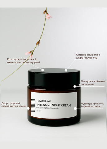 Пориньте у світ розкішного догляду з нашим нічним кремом RevitalElixir, створеним для глибокого відновлення та живлення шкіри під час сну. Його багата текстура дарує відчуття комфорту, а ретельно підібрані активні компоненти працюють на клітинному рівні, щоб ваша шкіра виглядала сяючою та молодою щоранку. Що робить цей крем особливим: ➤ Живлення та регенерація: арганова олія, олія бораго, олія ши та олія насіння моркви насичують шкіру цінними жирними кислотами, покращують пружність та борються з сухістю. ➤ Глибоке зволоження: гіалуронова кислота Oligo HA та гамма-поліглутамінова кислота забезпечують багаторівневий рівень зволоження, утримуючи вологу в шкірі. ➤ Антивіковий ефект: Matryxil 3000, коензим Q10 та бакучіол стимулюють вироблення колагену, зменшують зморшки та підвищують еластичність. ➤ Відновлення та заспокоєння: екстракт равлика, Д-пантенол та ніацинамід сприяють регенерації, зменшують запалення та вирівнюють тон шкіри. ➤ Антиоксидантний захист: екстракт зеленого чаю та вітамін Е нейтралізують вільні радикали, запобігаючи передчасному старінню. Результат: ✔ вранці ваша шкіра виглядає свіжою, зволоженою та помітно більш гладенькою ✔ тон обличчя стає більш рівним ✔ шкіра глибоко зволожена ✔ покращується еластичність Подаруйте собі найкращий нічний догляд – для краси, яка пробуджується разом із вами! INCI: Aqua, Cetearyl Olivate, Sorbitan Olivate, Cetearyl Alcohol, Squalane, Argania Spinosa Kernel Oil, Borago Officinalis Seed Oil, Daucus Carota Sativa Seed Oil, Butyrospermum Parkii Butter, Hydrolyzed Hyaluronic Acid, Gamma-Polyglutamic Acid, Ubiquinone, Palmitoyl Tripeptide-38, Bakuchiol, Snail Secretion Filtrate, Niacinamide, Camellia Sinensis Leaf Extract, Panthenol, Tocopherol, Citrus Aurantium Bergamia Peel Oil, Vanilla Planifolia Fruit Oil, Benzyl Alcohol, Dehydroacetic Acid.