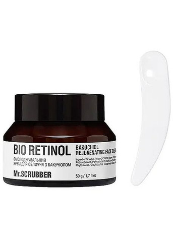 Омолоджувальний крем Bio Retinol з бакучіолом пом'якшує, розгладжує обличчя, має легкий відбілювальний ефект. Унікальна формула живить і відновлює гідроліпідний бар'єр шкіри, захищає її від зовнішнього негативного впливу. Як працює: фітостероли олії крамбе покращують текстуру шкіри, роблять її оксамитовою на дотик, зміцнюють захисний бар'єр і захищають від шкідливого зовнішнього впливу; бакучіол помітно покращує пружність, зменшує глибину вікових і мімічних заломів, ефективно усуває ознаки старіння; вітамін Е відновлює структуру шкіри, пришвидшує загоєння мікропошкоджень, нейтралізує дію вільних радикалів. Ефект: зміцнення захисного бар'єра регенерація і підвищення пружності забезпечення природного сяяння обличчя.