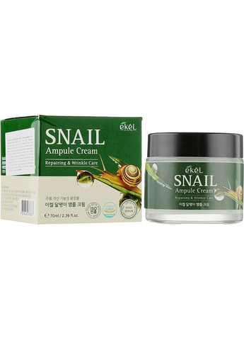 Ампульний крем для обличчя з муцином равлика Ekel - це висококонцентрований коктейль з натуральних компонентів, який уповільнює процеси старіння, бореться з дрібними недосконалостями і слідами втоми. Завдяки гіалуроновій кислоті і екстракту плаценти засіб активізує синтез «білків молодості» (колагену й еластину), який після 25 років поступово йде на спад і призводить до втрати пружності. Фільтрат равликового слизу з потужними зволожувальними, антимікробними та загоювальними властивостями, позбавляє від сухості, знижує виникнення прищів і акне. Секрет равлика містить алантоїн, колаген, вітаміни А, С, Е, В6, В12, еластин, хітозан і гліколеву кислоту. Він прибирає почервоніння та запалення на шкірі, звужує пори, покращує зовнішній вигляд шкіри, сприяє синтезу нової сполучної тканини, прекрасно зволожує та вирівнює тон, зменшує глибину зморшок, підвищує еластичність шкіри. Підходить для будь-якого типу шкіри, особливо для чутливої, проблемної або жирної шкіри з розширеними порами або вуграми. Особливості: нормалізує рН-баланс шкіри; екстракт зеленого чаю регулює секрецію сальних залоз і звужує розширені пори; екстракти алое, ромашки і центели заспокоюють запалення і зменшують почервоніння; екстракт граната і кореня солодки освітлюють пігментні плями і сліди постакне; прискорює процеси регенерації; захищає шкіру від негативних факторів навколишнього середовища. Спосіб застосування: попередньо очистити шкіру обличчя від косметики і забруднень, нанести невелику кількість крему легкими масажними круговими рухами. Рухатися по масажних лініях: знизу - вгору. Рекомендується використовувати вранці і ввечері. Уникати шкіри навколо очей. Не відмовляйте собі в задоволенні користуватися добірними дарами матінки-природи, адже вона краще будь-яких косметологів знає, що потрібно для здоров'я вашої шкіри! Бренд Ekel заснований у Південній Кореї, відомий завдяки своїм натуральним і доступним продуктам для догляду за шкірою. Ekel акцентує увагу на використанні натуральних інгредієнтів і прагне надавати продукцію, що підходить для різних типів шкіри, підтримуючи при цьому доступні ціни. Ekel став відомий завдяки своїм маскам для обличчя, особливо з алое вера, які заслужили хороші відгуки від споживачів. Ці маски є одними з найпопулярніших продуктів компанії і відомі своєю здатністю заспокоювати і зволожувати шкіру. Завдяки своїй здатності створювати продукти високої якості, Ekel поширив свою присутність на міжнародному ринку, продаючи свою продукцію в різних країнах світу.