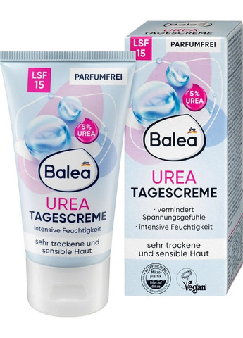 Денний крем для обличчя Balea Urea з SPF 15, 50 мл Денний крем Balea Urea з SPF 15 — ідеальний засіб для догляду за сухою шкірою. Крем Balea допомагає сухій шкірі підтримувати вологу і надає їй приємного відчуття свіжості. Активний інгредієнт сечовина забезпечує вашій шкірі інтенсивне та тривале зволоження. Сечовина, вітамін B і пантенол знімають відчуття стягнутості і запобігають почервонінню шкіри. Завдяки захисному фактору SPF 15 і фільтрам UVA крем захищає шкіру від передчасного старіння, спричиненого сонячним випромінюванням. Ви полюбите денний крем Balea Urea з SPF 15! Для бездоганної та оксамитово-ніжної шкіри. Характеристики: - інтенсивне зволоження для сухої та дуже сухої шкіри - з 5% сечовини, вітаміном В та пантенолом - знімає напругу шкіри, забезпечує зволоження - із захисним фактором 15 — захищає від передчасного старіння від сонця - без парафінів/мінеральних олій, парабенів, наночастинок, барвників, спирту - веганський - для сухої, дуже сухої та чутливої шкіри Склад: 5% сечовини, вітамін B, пантенол. Застосування: Нанесіть крем вранці на очищену шкіру обличчя, шиї та зони декольте. Акуратно вмасажуйте.