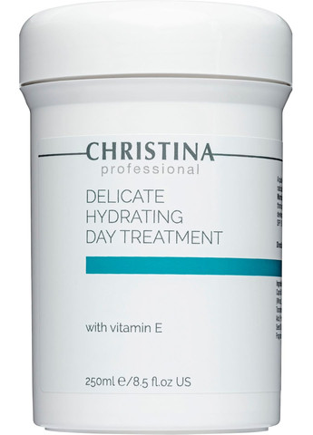 Опис Делікатний зволожувальний денний лікувальний крем з вітаміном Е для нормальної та сухої шкіри - Christina Delicate Hydrating Day Treatment Повноцінний денний догляд, зволоження і захист забезпечує сухій шкірі обличчя делікатний крем Christina Delicate Hydrating Day Treatment, який вирізняється лікувальною дією. Унікальна формула засобу багата вітамінами, мінералами, амінокислотами й оліями рослинного походження, які стимулюють обмін речовин у тканинах шкіри, тонізують і зволожують, зміцнюють природні захисні механізми та забезпечують захисну дію. Сечовина і гіалуронова кислота, які входять до складу крему Delicate Hydrating Day Treatment, насичують тканини вологою, підвищують пружність шкіри й сприяють її розгладженню, а жирні кислоти в поєднанні з дермавітамінним комплексом (А + Е) значно уповільнюють процес старіння і в'янення, мінімізуючи окислювальні процеси в клітинах. Олія зародків пшениці та каротинова олія активізують процес клітинної регенерації, покращують імунний захист, забезпечують протизапальний і заспокійливий ефект. Спосіб застосування Наносити крем від Christina на чисту суху шкіру 1 раз в день (вранці). Склад Очищена м'яка вода, гіалуронова кислота, сквален, глюкоза, фруктоза, сахароза, сечовина, декстрин, аланін, глютамінова кислота, алантоїн, пептиди дикого чебрецю, каротинова олія, колаген, гідролізований еластин, олія зародків пшениці, мінерали (магній, калій, кальцій, бром, хлориди, сульфати), екстракт білої конвалії, дермавітамінний комплекс (А+Е), есенціальні олії (F-вітаміни).
