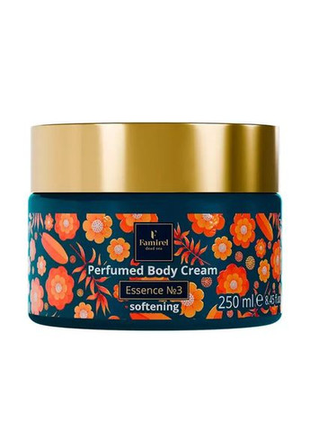 Унікальна формула крему для тіла Famirel Essence №3 заспокоює та інтенсивно живить, глибоко зволожує та відновлює шкіру, а сіль Мертвого моря насичує мікроелементами і мінералами. Парфумований крем для рук Famirel Essence №3 має вишуканий квітково-пудровий аромат. Прекрасно підходить для тих, хто цінує вишуканість та жіночність у кожній деталі свого образу. Композиція розкривається з ніжних та елегантних нот орхідеї, які плавно переходять у теплі, спокусливі акценти ванілі. Унікальний склад зволожує шкіру, залишаючи її м'якою, бархатистою та делікатно парфумованою протягом усього дня. До складу крему входять олії авокадо, гранату, мигдалю, моркви, оливи, ши, екстракт алое, вітамін Е, Д-пантенол (провітамін В5), каприлік, гліцерин.