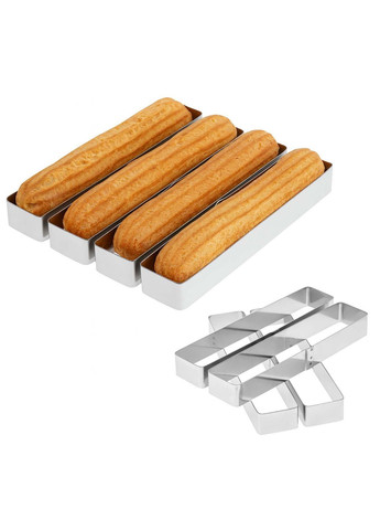 Порційні форми призначені для випікання еклерів, тістечок, тарталеток, а також ідеально підходять для мусів, тортів, закусок та навіть формованих салатів. Завдяки прямокутній формі та продуманій конструкції вони забезпечують рівномірне пропікання виробу, запобігаючи його підгоранню. Форми виготовлені з якісної нержавіючої сталі завтовшки 0.8 мм, яка витримує високі температури та не деформується з часом. Поверхня не вбирає запахів і легко очищається. Метал забезпечує відмінну теплопровідність, що сприяє рівномірному нагріванню тіста. Готова випічка зберігає форму, не кришиться і легко виймається з форми. Вироби підходять як для домашнього використання, так і для професійних кухонь – ресторанів, кондитерських, пекарень і навіть сироварень. Міні-тарталетки з полуничним джемом, заварним кремом та ягодами Інгредієнти для тестування: Борошно — 200 г Холодне вершкове масло — 100 г Цукор — 50 г Яєчний жовток — 1 шт Щіпка солі Інгредієнти для заварного крему: Молоко — 200 мл Яєчні жовтки — 2 шт Цукор — 60 г Крахмаль — 20 г Вершкове масло — 20 г Приготування: Змішайте борошно із сіллю та цукром. Додайте|добавляйте| холодну олію і перетріть в крихту. Вмішайте жовток та замісіть тісто. Загорніть у плівку та приберіть у холодильник на 30 хвилин. Розподіліть тісто по формах і випікайте при 180°C 15-18 хвилин до золотистого кольору. Для крему: змішайте жовтки з цукром і крохмалем, влийте гаряче молоко і добре перемішайте. Варіть на середньому вогні, постійно помішуючи, до загусання. Додайте вершкове масло. У готові тарталетки викладіть полуничний джем, заварний крем і прикрасьте свіжими ягодами. Ідеально для святкового столу, затишного чаювання чи солодкого частування до кави! Характеристики товару: Тип: форми для випікання розсувні порційні Призначення: еклери, тарталетки, муси, тістечка, салати Матеріал: нержавіюча сталь Довжина форми: 20 см Ширина форми: 4 см Висота форми: 2,5 см Товщина металу: 0,8 мм Вага набору: 282 г Кількість у наборі: 4 штуки Догляд: легко миється вручну та в посудомийній машині