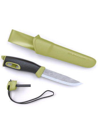 Відправка протягом 1-2 робочих днів. Характеристики: Тип заточування: прямий; Тип ножа: нескладний; Загальна довжина: 238 мм; Довжина клинка: 104 мм; Товщина клинка: 2.5 мм; Сталь клинка: нержавіюча; Марка сталі: Sandvik 12C27; Твердість: 56-58 HRC; Форма клинка: drop-point; Колір рукоятки: світло-зелений; Вага: 128 г; Чохол/ножні: так; Опис: Ніж із холоднокатаним лезом з нержавіючої сталі Sandvik 12C27 (HRC 56-58) товщиною 2,5 мм.; Скандинавське шліфування дає дуже гострий край із чудовим контролем надрізу і ніж легко точити.; Ергономічна рукоятка з гумовою рукояткою з високим коефіцієнтом тертя створює відчуття повного контролю, полегшуючи роботу.; Пластикові піхви з поясною петлею.; Кресало фіксується в рукояті; Світловідбиваючий паракордний шнур 475 мм; Високоякісне кресало - вбудоване прямо в рукоятку.;