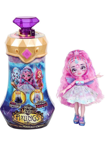 Ігровий набір Magic Mixies Unia The Unicorn Pixling дозволяє дитині створити власне чарівне зілля, щоб магічним чином виявити ляльку-єдинорога Унію всередині пляшки-колби. Щоб відкрити ляльку, потрібно змішати воду з доданими магічними інгредієнтами в спеціальній пляшці. Суміш стає темно-синьою, а після вимови чарівних слів «MAGICUS MIXUS» і натискання на кришку з кристалом вона стає прозорою, являючи Унію. Унія — це красива лялька з довгим волоссям, м'якою спідницею та взуттям. Вона має містичний дорогоцінний камінь у формі перлини на чолі, що нагадує ріг єдинорога. Лялька має 7 точок артикуляції, що дозволяє надавати їй різноманітних поз. Пляшка для зілля також служить підставкою для ляльки. Комплектація: У набір входить пляшка-колба, лялька Унія, інгредієнти для зілля та інструкція.