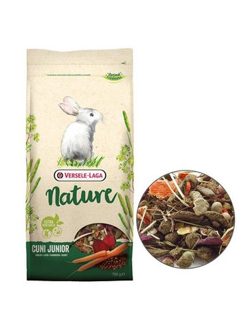 Натуральне харчування як у природі! Nature Cuni Junior – повноцінний натуральний суперпреміум корм для кроленят до 8-ми місяців. Забезпечує збалансований раціон, що враховує всі потреби підростаючих кроликів. Покращена формула корму у новій упаковці з оновленим дизайном! Різноманітність текстур і смаків максимально наближено до раціону травоїдних у їхньому природному середовищі. Без зернових, барвників, консервантів, ГМО. В основі – суміш тимофіївки та інших корисних трав, спеціально вирощених та відібраних для створення раціону Nature. Без люцерни. На 20% збільшено кількість клітковини та на 20% знижено вміст крохмалю для здоров'я травної системи та зубів гризунів. Більше необроблених, натуральних компонентів. У складі немає пресованих гранул, тільки хрумкі екструдовані гранули з волокнистою структурою з понад 10 спеціально відібраних корисних трав. Додатково до корму додано сіно тимофіївки.