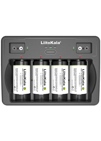 Універсальний зарядний пристрій Liitokala Lii-D4 на 4 канали (Li-ion, NiMH + NiCD + крона) Type-C Універсальний зарядний пристрій LiitoKala Lii-D4 для акумуляторів NiCd, NiMH, Li-Ion, LiFePO4, 10440, 18650, 26650, 32700, A, АА, ААА з LED індикатором - зарядний пристрій на 4 канали для 4 каналу крон 9В зі зручним керуванням однією кнопкою якої можна вибрати струм заряду, з можливістю одночасно розміщувати 4 акумулятори формату D. Автоматично розпізнає літій-іонні, нікель-металгідридні та нікель-кадмієві акумулятори, має 4 + 2 слотів для заряду до 4 циліндричних акумуляторів різного хімічного складу і практично всіх типорозмірів акумуляторів АА, ААА, С (R14), D, A, SC, 14500, 16340, 18350, 18650, 21700, 20750, 2. Також має два слоти для заряду акумуляторів у форматі 6F22 крона. Зарядний пристрій LiitoKala Lii-D4 простий, інтуїтивний в управлінні з яким вам не потрібно купувати кілька зарядних пристроїв - ви зможете заряджати різні форм-фактори акумуляторів та різного хімічного складу одним зарядним пристроєм. Всі 4 порти, а також 2 порти для крон, зарядного пристрою LiitoKala Lii-D4 незалежні і контролюються індивідуально, що дозволяє заряджати акумулятори різного типу і хімічного складу одночасно. Наявність зрозумілої світлодіодної індикації полегшує роботу з LiitoKala Lii-D4. Зарядний пристрій автоматично розпізнає Ni-MH, Ni-Cd, Li-ion акумулятори, для LiFePO4 режим потрібно вибирати вручну, може заряджати їх різним струмом, він вибирається автоматично в залежності від кількості встановлених акумуляторів, а напруга вибирається окремо в залежності від типу акумулятора. Кожен слот самостійно відключається при досягненні максимального рівня заряду. Варіанти струмів заряду.