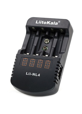 Характеристики: Бренд: LiitoKala. Модель: Lii-D4. Тип: Зарядний пристрій акумуляторів. Тип акумуляторів, що заряджаються: NiCd, NiMH, Li-Ion, LiFePO4. Живлення ЗУ: USB. Кількість слотів для акумуляторів: 4+2 незалежні канали. Вхідна напруга: DC5V/2.0A. Вихідна напруга: 1,42, 4,2, 9,0 В. Вихідний струм: 1000 мА x 2, 500 мА x 4, 300 мА x 4, 85 мА x 2. Постійний струм/заряджання при постійній напрузі, струм відключення: Менше 100мА. Струм у режимі очікування: Менше 15mA. Робоча температура: 0-40 °C. Матеріал: Пластик. Колір чорний. Сумісність: Діаметр акумуляторів: 8-33 мм. Довжина акумуляторів: 34-72 мм. Розміри заряджання: 179x127x45 мм. Вага: 300 г.