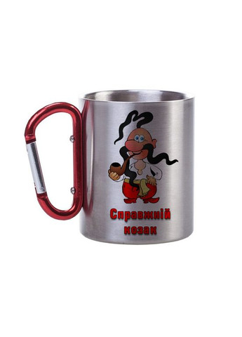 Металева чашка з подвійними стінками і ручкою-карабіном — це ідеальний супутник для любителів туризму, риболовлі, військових і всіх, хто цінує зручність у польових умовах. Завдяки подвійним стінкам напій надовго залишається гарячим, а зовнішня поверхня залишається прохолодною, що захищає руки від опіків. Зручна ручка у вигляді карабіна дозволяє легко закріпити чашку на рюкзаку, поясі чи спорядженні, тож її завжди можна мати під рукою під час походу чи подорожі. Ця чашка стане чудовим подарунком для тих, хто цінує практичність і функціональність у повсякденному житті та на природі. Характеристика: - Матеріал: метал - Спосіб нанесення принту: сублімація - Принт: нанесений з обох сторін - Об'єм: 300 мл - Висота: 9 см - Діаметер: 7,6 см - Призначення: для чаю, кави, води або інших напоїв. УВАГА! Ми не рекомендуємо мити чашку в посудомийній машині, щоб уникнути пошкодження принта.