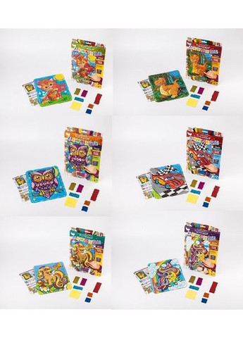 У набір входить заснована картонна заготовка і різнокольорові кубики, що самоклеяться, мають гнучку структуру. Кожен із цих елементів присвоєний свій номер і завдяки йому, а також кольору малюки збирають зображення. Після того як збірка мозаїки буде завершена, дитина отримає яскраву картинку, якою можна прикрасити інтер'єр дитячої кімнати. Подібні іграшки допомагають дітям сформувати впевненість у своїх силах, а також розвинути свою уяву, посидючість, самостійність, моторику пальчиків, творчі здібності, образне та просторове мислення. Комплектація: кольорова картонна основа-заготівля, гнучкі блискучі кубики різних кольорів. * Характеристики та комплектація товару можуть змінюватися виробником без попередження