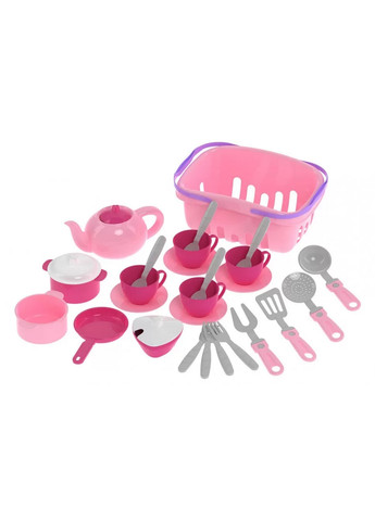Кухонний набір у кошику – справжня знахідка для маленької господині. Яскраві кольори та різноманітність посуду обов'язково привертають увагу малюків. У наборі є все необхідне для приготування смачних страв та гостей. Дві каструльки та сковорода для втілення кулінарних задумів. Шумування, черк та лопатка роблять процес приготування максимально реалістичним. А для того щоб підбадьорити гостей ароматним чаєм, це чайник з кришкою, цукром, ложками та філіжанками на блюдечках. Всі іграшки розміщуються у кошику з двома ручками. Отже, посуд можна брати із собою на прогулянку та влаштувати справжній пікнік для друзів. Вдома ж іграшки зручно зібрати у кошик і зберігати у дитячому. Кухонний набір у кошику стане улюбленою іграшкою маленької господині. Він чудово доповнить ігрову кухню Вашого малюка. Хазяйки з радістю готуватимуть смачні борщі, соковиті стейки та інші кулинові шедеври. Такі сюжетно-ролейські ігри допоможуть Вашим дітям виявляти гостинність, привчають дотримуватися порядку та бути охайними. Діти з іграшковим посудом вивчають основи сервірування столу та кулінарії. Всі елементи набору виготовлені із міцного пластмасового пластику, безпечного для дітей. Упаковка – мережа. У наборі: корзина, дві каструлі, кришка, сковорідка, лопатка, велика вилка, черпак, шумів, цукерка з кришкою, чайник з кришкою, 4 вилки, 4 чашки з блюдцями та ложечками. Країна реєстрації бренду: Україна; Виробник: Технок; Бренд: Технок; Країна-виробник товару: Україна; Габарити: ширина: 27; Габарити: висота: 18.5; Габарити: довжина: 12.3; Вага товару: 0.345; Вид: Розвиваючі; Вік: Від 3-х років; Матеріал: Пластик; Тип: Набір посуду; Торгова марка: Технок; Колір: кольоровий; Розмір виробу: 18,5 х12, 3х27 см; Стать: Унісекс; Упаковка: Мережа; Вікова група: Від 3 років;