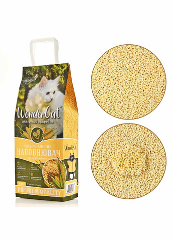 Кукурудзяний наповнювач WonderCat – натуральний комфорт для вашого кота! Шукаєте безпечний, натуральний та ефективний наповнювач для котячого туалету? WonderCat – ідеальне рішення! Це 100% природний кукурудзяний наповнювач, який чудово вбирає вологу, грудкується та усуває неприємні запахи. Він не містить хімічних добавок, а його екологічна формула дозволяє безпечно утилізувати використані гранули. Чому варто обрати саме WonderCat? Безпечний – не містить пилу, алергенів та штучних ароматизаторів. Грудкується – утворює щільні грудки, які легко прибирати без зайвих витрат. Економний – довготривале використання без необхідності частої заміни. Комфортний для лапок – м’які гранули не травмують подушечки кота та не прилипають. Не створює бруду – не розноситься по квартирі, зберігаючи чистоту. Без різких запахів – має природний аромат кукурудзи. Екологічний – безпечний для навколишнього середовища, підходить для компостування. Як правильно використовувати: Насипте 4-5 см наповнювача в чистий лоток. Регулярно прибирайте грудки та тверді відходи. Досипайте в міру необхідності для підтримки оптимальної висоти шару. Повна заміна рекомендована раз на 14 днів (залежно від активності кота). Використані гранули можна змивати в унітаз або утилізувати в компості. WonderCat – це комфорт вашого улюбленця та бездоганна чистота у вашому домі!