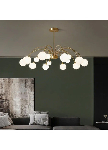 Світлодіодна люстра Дзвін 6006 Світлодіодна люстра Дзвін 6006 – це сучасна люстра з металевою конструкцією, покритою золотом та білими скляними абажурами. Дизайн елегантний та сучасний, має центральну штангу, що гілкується на граціозно вигнуті руки, кожна з яких підтримує скляний абажур, спрямований вниз. Абажури мають форму дзвона, що допомагає мяко розсіювати світло. Така люстра підходить для різноманітних інтерєрів, забезпечуючи як функціональне джерело світла, так і стильний упор у приміщенні. Особливості: Дизайн: Елегантна конструкція з багатогранними скляними елементами та золотистою обробкою створює розкішний та сучасний вигляд, що відразу привертає увагу. Освітлення: Прозорі скляні кулі рівномірно розподіляють світло, створюючи яскраве та чисте освітлення, що ідеально підходить для будь-якого простору. Енергоефективність: Використання світлодіодів забезпечує низьке енергоспоживання та високу ефективність, продовжуючи термін служби люстри. Регулювання: Сумісність з димерами дозволяє легко змінювати інтенсивність світла для відповідного настрою (димер продається окремо). Установка: Простота монтажу з детальною інструкцією забезпечує безпроблемне встановлення люстри. Розміри: Оптимальні розміри роблять цю люстру ідеальним вибором для різних просторів від малих кімнат до великих залів.