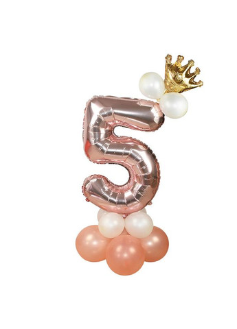 Композиція фольгована цифра "5" рожеве золото з короною "Зроби сам" - це набір товарів з якого ви самі зможете просто і швидко зробити копмозицію, як показано на фото. Продається тільки комплектом. Можливо вибрати інші кольори кульок на бажання клієнта. Відеоінструкція додається:) Комплект: 1. Фольгована цифра (70см) -1шт 2. Фольгована корона міні золота (40см) - 1шт 3. Кулька 10" (26см) - 4шт.+1 запасна 4. Кулька 5"(13см) - 8 шт.+2 запасні 5. Кулька конструктор - 3 шт. (для кріплення кульок) 6. Клеєві точки - 4шт.
