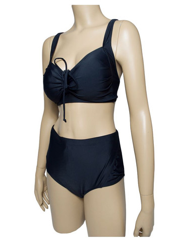 Чорний купальник великого розміру з м'якою чашкою та закритими плавками Класичний купальник великого розміру від виробника FUBA.VI виконаний в стилі ретро, має чорне забарвлення та стандартний крій. Роздільний жіночий одяг підходить для всіх типів фігури, добре приховує недоліки, дуже зручний у використанні на активному відпочинку біля води влітку. Матеріал тканини еластичний та пружний, швидко сохне. Складається на 82% з поліаміду, на 18% з еластану. Переваги купальника великого розміру Чорний купальник великого розміру з м'якими чашками має особливості: М'яка чашка ліфа, не має кісточок -це додає додаткового комфорту. Поролонові вкладки, які можна знімати, дають змогу купальнику висихати ще швидше. Бюст на широких, регульованих бретелях, для можливості підлаштувати ліф під свій розмір. Ширина та висота топа регулюється - це дає можливість скорегувати глибину декольте. Спинка на застібці, надійна, мателева. Посадка трусиків трохи вище стандартної, модель максимально закрита, з широкими боками, перед на підкладці.