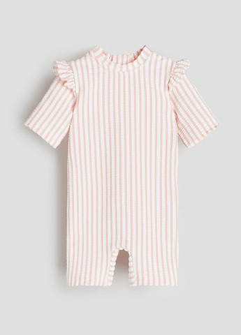 Купальний комбінезон з текстурованого матеріалу із захистом від ультрафіолету. Має комір-стійку, блискавку ззаду із захистом від защемлення, короткі рукави та штанини. Захист від ультрафіолету UPF 50.