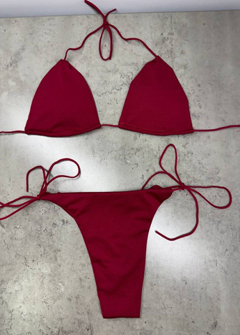 Бюстгальтер шторки з м’якими трикутними чашками без кісточок, на зав’язках, зі знімними вкладками. Трусики середньої посадки, з бічними зав’язками. У комплекті — легка кофта з мікросітки з розкльошеними рукавами. Ідеально для пляжу, басейну та вечірок біля моря.