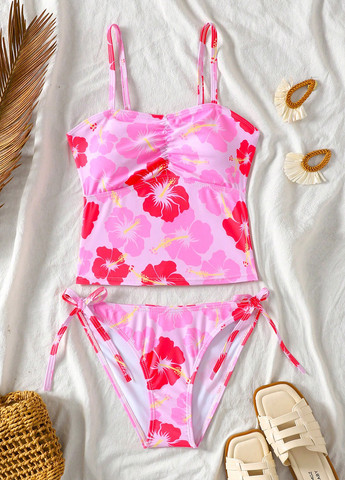 Купальник-танкіні великих розмірів Swim Vcay, жіночий, 2 предмети, білий, з плетінням. Цей купальник-танкіні виконаний у білій кольоровій гамі. Він складається з двох предметів: верху танкіні та плавок бікіні. Верхня частина має глибокий виріз і бретелі, що перехрещуються, на спині. Плавки з високою талією.