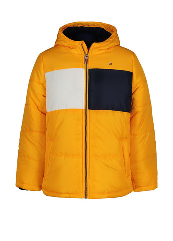 Дитяча тепла куртка Tommy Hilfiger з капюшоном - ідеальний вибір для холодних днів. Куртка утеплена надійним наповнювачем та має підкладку з м'якого флісу, що гарантує тепло та комфорт у будь-яку погоду. Застібається на блискавку для зручності та надійності. Дві бічні кишені з флісовою підкладкою допоможуть зігріти руки та зберігати дрібні речі в безпеці. Вишитий прапор бренду спереду та логотип на капюшоні надають куртці стильного вигляду. Ця куртка поєднує тепло, комфорт і елегантність, ідеально підходячи для активних дітей. Відмінна якість.
