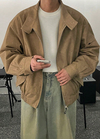 Жіноча куртка вільного крою. Застібка пластикова, блискавка - "трактор", чорного кольору. Вшивний не великий капюшон без утяжок під горло. Рукав втачний без манжета, По поличці функціональні приховані кишені на блискавці. Колір хакі. Розтрочка по виробу горизонтальна.