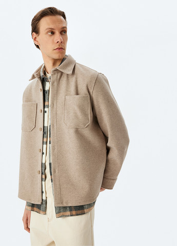 Чоловіча щільна сорочка з бавовняного трикотажу на ґудзиках. Спереду три накладні кишені.