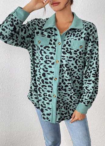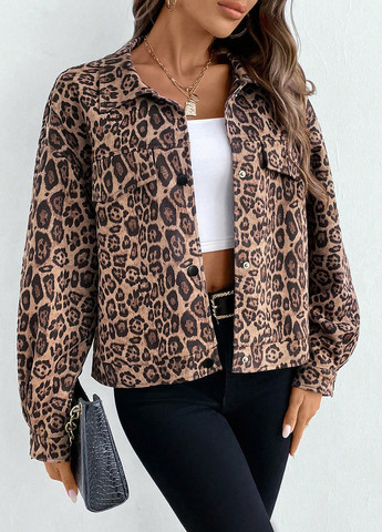 Ця повсякденна куртка має леопардовий принт та рукави з приспущеним плечем. Вона має вільний крій та стандартний поділ. Куртка включає застібку на кнопки спереду. Тканина не тягнеться і має відкладний комір.
