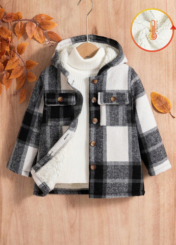 Куртка-сорочка SHEIN Young Girl Plaid з капюшоном та термопідкладкою. Підходить для температури нижче 10°C.