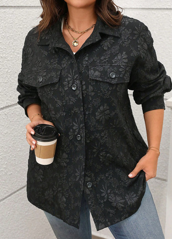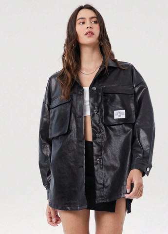 Ця чорна куртка-сорочка призначена для повсякденного носіння. Вільний крій. Довгі рукава. Підкладка відсутня. Рекомендації щодо догляду: машинне прання або професійна хімчистка.
