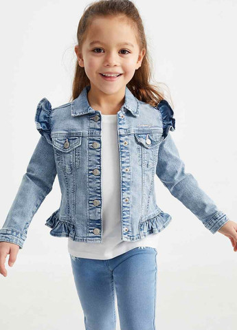 Модна джинсова куртка-сорочка oversize. Відкладний комір, довгі рукави зі спущеною лінією плеча та манжети на гудзику. На грудях дві великі накладні кишені. Застібка на ряд гудзиків. Акцентна деталь – синій колір клапанів на кишенях.