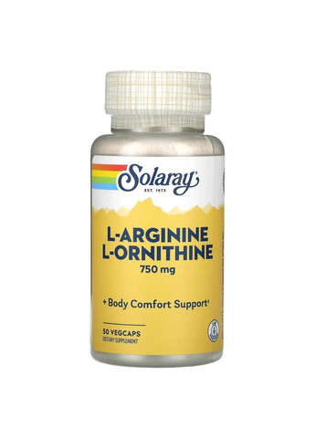 Л-аргінін і Л-орнітин L-Arginine L-Ornithine 750 мг Solaray, 50 капсул Дієтична добавка. Не є лікарським засобом. Опис L-Arginine L-Ornithine Solaray — дієтична добавка у формі капсул, що містить комбінацію двох амінокислот: L-аргініну та L-орнітину у сумарному дозуванні 750 мг. Обидві речовини природно зустрічаються в білкових продуктах, таких як м’ясо, горіхи та бобові, і є частиною загального раціону людини. У формі добавки вони пропонуються як зручний спосіб урізноманітнити споживання амінокислот, особливо для людей, які ведуть активний спосіб життя або дотримуються обмежених дієт. Продукт Solaray виготовлено з високоякісної сировини та не містить штучних добавок. Ключові особливості Містить 750 мг комбінації L-аргініну та L-орнітину Амінокислоти природного походження — отримані з білкових джерел Без ГМО, барвників, глютену та штучних консервантів 50 капсул у банці — зручно для короткострокового або ознайомчого курсу Вироблено відповідно до стандартів якості бренду Solaray Про бренд Solaray — американський бренд із понад 45-річним досвідом у виробництві дієтичних добавок. Компанія поєднує натуральні компоненти з сучасними технологіями, приділяючи особливу увагу якості сировини, екологічності процесів і точності формулювання. Рекомендації / Застереження Використовуйте відповідно до рекомендацій виробника, зазначених на упаковці. Не перевищуйте рекомендовану добову норму споживання. Не використовуйте як заміну повноцінного харчування. Не рекомендується дітям, вагітним і жінкам у період лактації. Перед використанням проконсультуйтеся з фахівцем. Умови зберігання Зберігати в сухому, прохолодному місці при температурі до +25 °C, захищеному від вологи та сонячного світла. Тримати поза досяжністю дітей. Опис подає інформацію про поживні властивості продукту. Не призначено для діагностики, лікування чи профілактики захворювань.