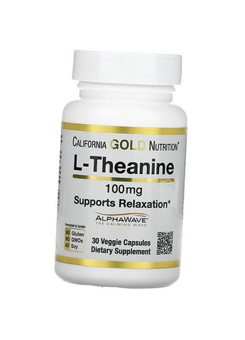 Харчова добавка L-Theanine AlphaWave 200 від американського бренду California Gold Nutrition! Підтримує розслаблення та спокійну концентрацію Містить AlphaWave® The Calming Wave Допомагає розслабитись, не викликаючи сонливості Покращує когнітивну функцію та знижує рівень стресу Продукт не містить глютену, ГМО та сої Проводиться на підприємстві, яке має реєстрацію поточної належної виробничої практики (cGMP) та проходить незалежні перевірки. L-теанін - це амінокислота, яка міститься в листі зеленого чаю і сприяє розслабленню, зберігаючи концентрацію уваги. Згідно з дослідженнями, прийом L-теаніну як добавка може посилювати альфа-ритми мозку, які є ознакою розслаблення без сонливості. Поєднання зібраної розслабленості та спокійної зосередженості пояснює вибір даного ноотропного засобу тими, хто хоче покращити когнітивні здібності та знизити рівень стресу. Склад: Склад на порцію – 1 капсула: L-теанін (AlphaWave) 200 мг Інші інгредієнти: мікрокристалічна целюлоза, модифікована целюлоза (рослинна капсула), діоксид кремнію. Містить L-теанін AlphaWave®. AlphaWave® є зареєстрованою торговою маркою Ethical Naturals, Inc. При виробництві даного продукту не використовуються молоко, яйця, риба, молюски та ракоподібні, деревні горіхи, арахіс, пшениця, соя та глютен. Виробляється на підприємстві, що проходить незалежні перевірки та має реєстрацію поточної належної виробничої практики (cGMP), де можуть оброблятися інші продукти, що містять дані алергени та інгредієнти. Як приймати: Приймати по 1 капсулі на день незалежно від їди. Бажано приймати відповідно до рекомендацій лікаря. Попередження: Не використовувати, якщо у вас є алергія на будь-яке з'єднання. Не перевищувати рекомендовану добову порцію. Проконсультуйтеся з лікарем під час вагітності або лактації. Харчові добавки не повинні використовуватися замість різноманітної та збалансованої дієти. Зберігати у недоступному для дітей місці. Зберігати у сухому та прохолодному місці. Захищати від прямого сонячного проміння.