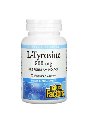 Магазин "РОСЛИНА" пропонує купити Л-Тирозин (L-Tyrosine) Natural Factors США 500 мг 60капсул. це амінокислота, важлива для синтезу білків та нейротрансмітерів. Тирозин відіграє ключову роль у виробництві дофаміну, норадреналіну та тироксину.