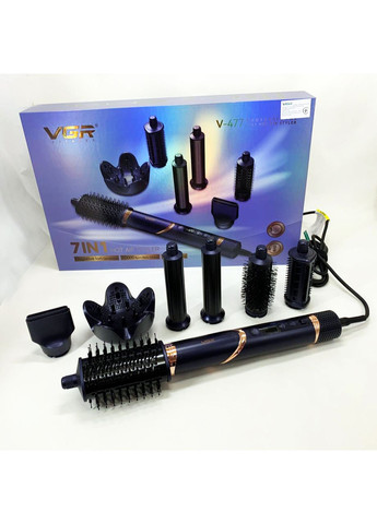 Фен-стайлерVGR V-477 – універсальний прилад для укладання та завивки волосся, який поєднує в собі безліч функцій для створення ідеальних зачісок. Його потужність складає 1400 Вт, що забезпечує ефективну роботу. Серед перевагцього стайлера виділяються 7 насадок, які дозволяють експериментувати з різними стилями волосся. Прилад оснащений іонізацією та керамічним покриттям, що допомагає зменшити статичну електрику і надає гладкість вашим локонам. Фен-стайлермає 3 режими температури та 2 швидкості, а також функцію холодного повітря для закріплення укладки. Цей багатофункціональний прилад ідеально підходить для створення стильних зачісок в домашніх умовах. ХарактеристикиVGR V-477: Напруга: 220-240В Частота: 50/60 Гц Довжина шнура: 1,8 м Вага: 680 г Колір: темно-синій Інструкція з використання:оберіть потрібну насадку, встановіть бажану температуру та швидкість, висушіть волосся на 80%, розділіть його на пасма і укладайте від коренів до кінчиків. Для найкращих результатів рекомендується використовувати **термозахисний спрей**, **фіксуючий лак**, **гребінець для укладання** та **затискачі для волосся**. Фен-стайлер VGR V-477– це професійний пристрій, що дозволяє робити укладку вдома, здійснювати догляд за волоссям, укладати локони, випрямляти волосся та створювати об’єм біля коренів. Він забезпечує швидку укладку, захист від перегріву та іонне кондиціонування, що робить його незамінним помічником для будь-якої модниці.