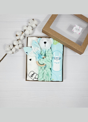 Подарунковий набір 4 одиниць: Багаторазова непромокаюча пелюшка 50х80 Фланелева м'яка та ніжна пелюшка 80х100 Комфортер "Ведмежа" Еко гризунець "Шурухливі вушка" Увага! Розташування малюнка на виробі може відрізнятися від того, що на фото.