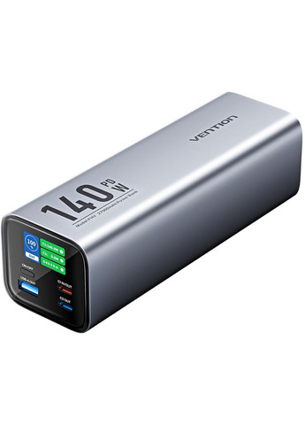 Універсальна мобільна батарея ємністю 27000 мАг Vention 27000mAh 140W (FHVH0) допоможе швидко і безпечно зарядити смартфони, планшети, ноутбуки, ігрові консолі, акумулятори настільних ламп, вентиляторів та інші USB-пристрої. Повербанк Vention 27000mAh 140W оснащений трьома вихідними портами - двома USB-C і одним USB-A. Ви зможете заряджати одночасно до трьох пристроїв. Для зарядки ноутбуків використовуйте порт USB-C1 (in/out). Підтримка протоколу швидкої зарядки PD 3.1 дає змогу домогтися зарядної потужності до 140 Вт. Порт USB-C2 підтримує протоколи швидкої зарядки PD3.0/QC3.0/AFC/FCP/Apple 2.4A і заряджає пристрої з максимальною потужністю 20 Вт. Порт USB-A з протоколами швидкої зарядки QC3.0/FCP/AFC/Apple2.4 зарядить під’єднані пристрої з потужністю до 18 Вт. За одночасної роботи трьох зарядних портів ви отримаєте зарядну потужність 100 Вт на порті USB-C1 і до 15 Вт на портах USB-A і USB-C2. Вбудований захист від перевантаження за струмом, перенапруги, перезарядки, перерозрядки, перегріву та короткого замикання робить батарею Vention 27000mAh 140W безпечною для вас і ваших пристроїв. Швидко поповнюйте заряд УМБ через порт USB-C1 з потужністю до 140 Вт. Кольоровий цифровий дисплей на передній панелі батареї повідомлятиме про рівень заряду та поточний стан роботи портів. Виконана в алюмінієвому корпусі УМБ Vention 27000mAh 140W стане вашим ідеальним супутником для поїздок. Беріть її на борт літака та підтримуйте заряд своїх портативних пристроїв.